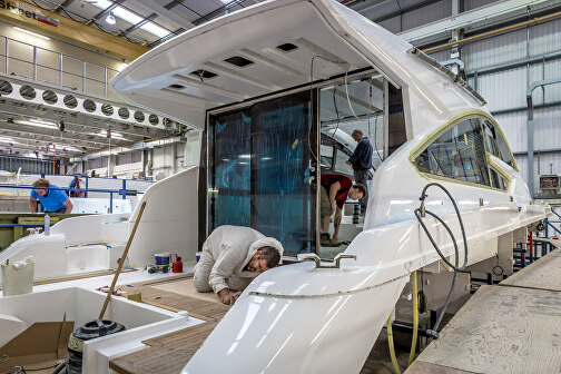 Укладывание ламината слоями, формирование частей и деталей для яхт.