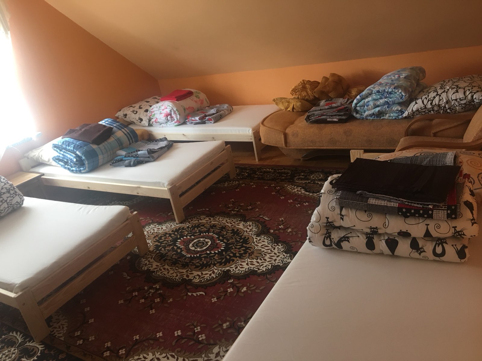 Проживание в домах, комнаты на 3-4 человека.